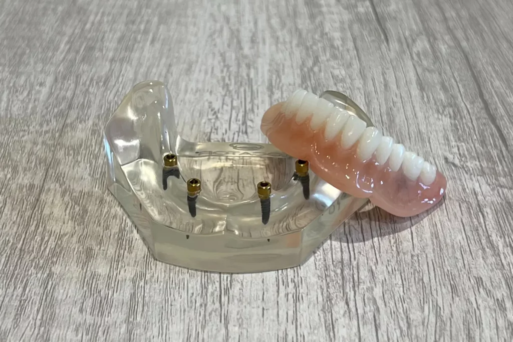 Replaces all of your top OR bottom teeth with a secure denture held in by 4 dental implants.